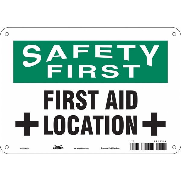 Safety First, First Aid Location, 10 in W x 7 in H, Vertical Rectangle, Polyethylene, 471V28