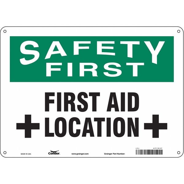 Safety First, First Aid Location, 14 in W x 10 in H, Horizontal Rectangle, Aluminum, 471V27