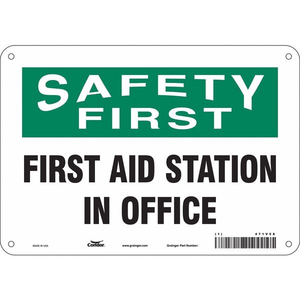 Safety First, First Aid Station In Office, 10 in x 7 in, Vertical Rectangle, Polyethylene, 471V58