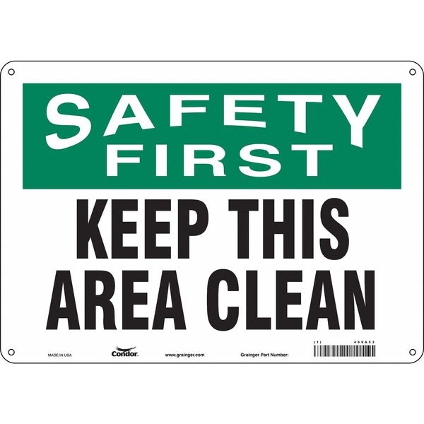 Safety First, KEEP THIS AREA CLEAN, 14 in W x 10 in H, Horizontal Rectangle, Polyethylene, 469A53