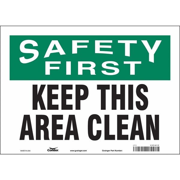 Safety First, KEEP THIS AREA CLEAN, 14 in W x 10 in H, Horizontal Rectangle, Vinyl, 469A55