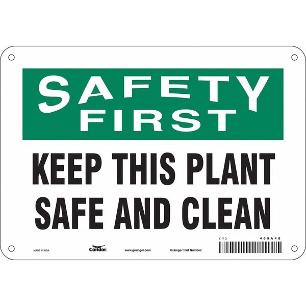 Safety First, KEEP THIS PLANT SAFE AND CLEAN, 10 in W x 7 in H, Rectangle, Polyethylene, 469A46