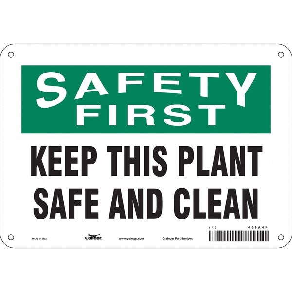 Safety First, KEEP THIS PLANT SAFE AND CLEAN, 10 in W x 7 in H, Vertical Rectangle, Aluminum, 469A44