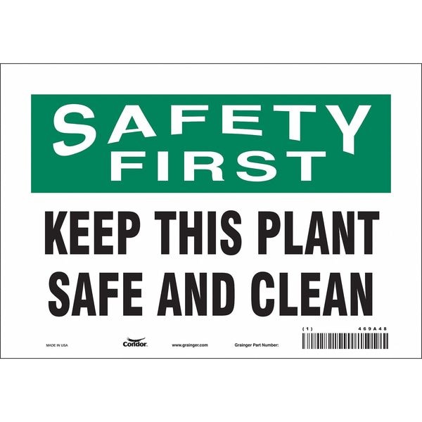 Safety First, KEEP THIS PLANT SAFE AND CLEAN, 10 in W x 7 in H, Vertical Rectangle, Vinyl, 469A48