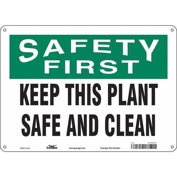 Safety First, KEEP THIS PLANT SAFE AND CLEAN, 14 in W x 10 in H, Rectangle, Polyethylene, 469A47