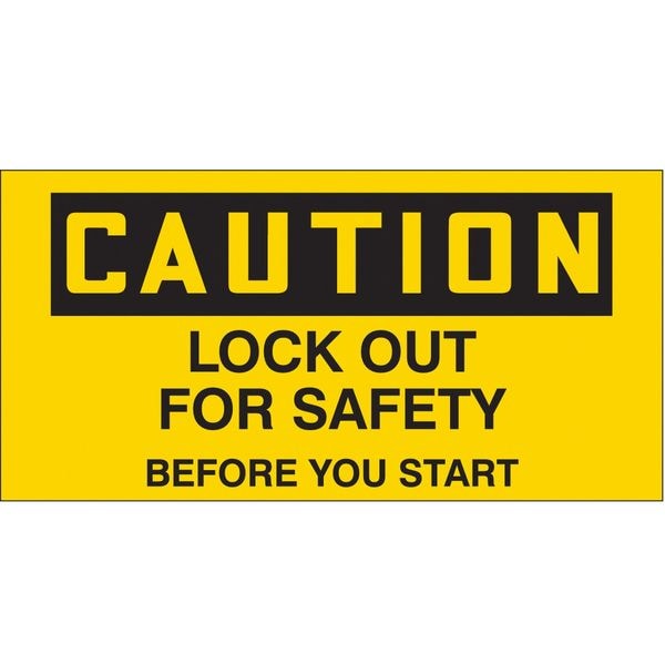 Safety Sign, Horizontal Rectangle, Number of Printed Sides 1, English, Sign Format Traditional OSHA, Sign Legend Lock Out For Safety Before You Start, Sign Legend Background Color Yellow, Sign Legend Style Text, Package Quantity 2