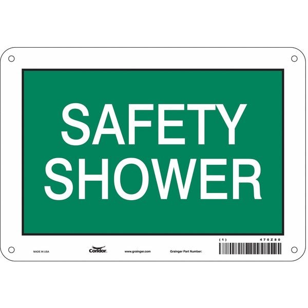 Safety Sign, Vertical Rectangle, Number of Printed Sides 1, English, Sign Format Other Format, Sign Legend Safety Shower, Sign Legend Background Color Green, Sign Legend Style Text