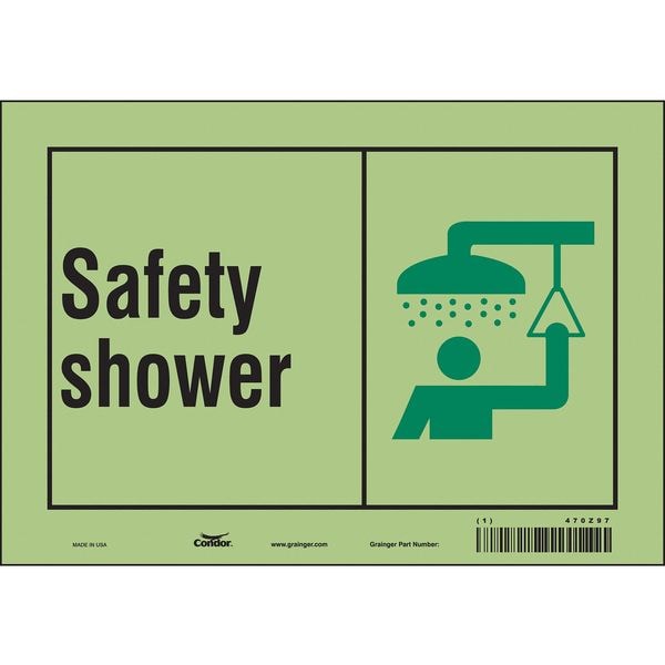 Safety Sign, Vertical Rectangle, Number of Printed Sides 1, English, Sign Format Other Format, Sign Legend Safety Shower, Sign Legend Background Color White, Sign Legend Style Symbol and Text