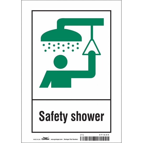 Safety Sign, Horizontal Rectangle, Number of Printed Sides 1, English, Sign Format Other Format, Sign Legend Safety Shower, Sign Legend Background Color White, Sign Legend Style Symbol and Text