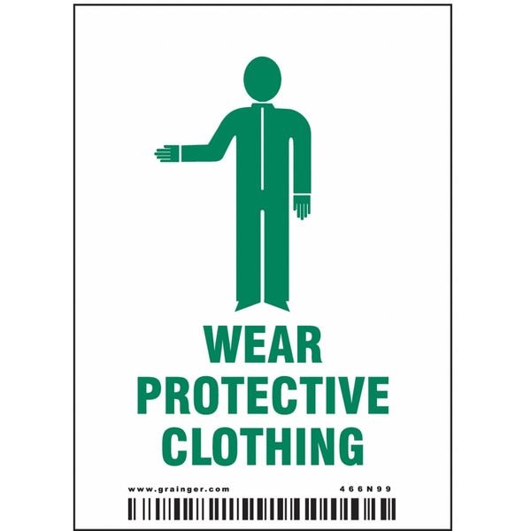 Safety Sign, Vertical Rectangle, Number of Printed Sides 1, English, Sign Format Other Format, Sign Legend Wear Protective Clothing, Sign Legend Background Color White, Sign Legend Style Symbol and Text, Package Quantity 25