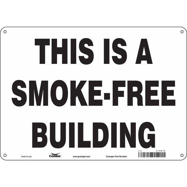 Safety Sign, Horizontal Rectangle, Number of Printed Sides 1, English, Sign Format Other Format, Sign Legend This Is A Smoke-Free Building, Sign Legend Background Color White, Sign Legend Style Text