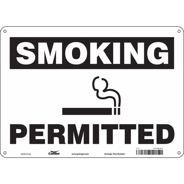 Safety Sign, Horizontal Rectangle, Number of Printed Sides 1, English, Sign Format Other Format, Sign Legend Smoking Permitted, Sign Legend Background Color Black, White, Sign Legend Style Symbol and Text