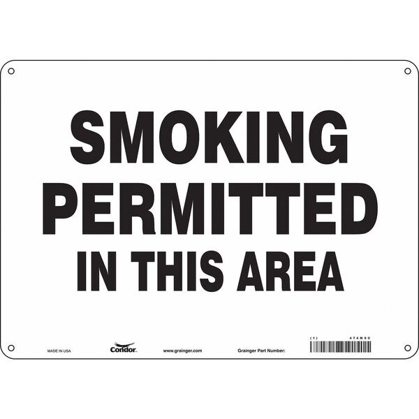 Safety Sign, Horizontal Rectangle, Number of Printed Sides 1, English, Sign Format Other Format, Sign Legend Smoking Permitted In This Area, Sign Legend Background Color White, Sign Legend Style Text