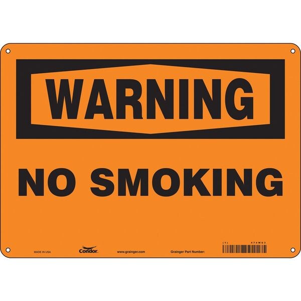 Safety Sign, Horizontal Rectangle, Number of Printed Sides 1, English, Sign Format Traditional OSHA, Sign Legend No Smoking, Sign Legend Background Color Orange, Sign Legend Style Text