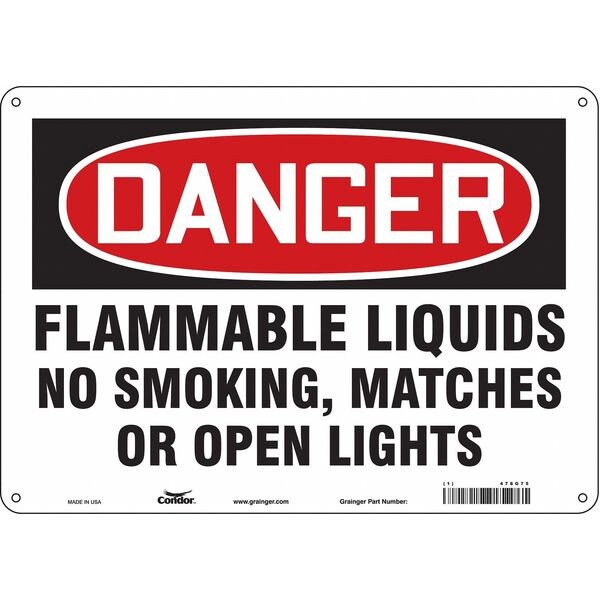 Safety Sign, Horizontal Rectangle, Number of Printed Sides 1, English, Sign Format Traditional OSHA, Sign Legend Flammable Liquid No Smoking, Matches Or Open Lights, Sign Legend Background Color White, Sign Legend Style Text