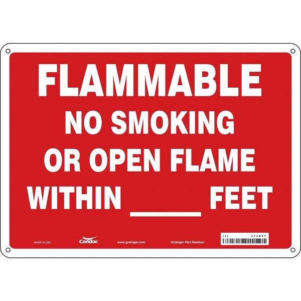 Safety Sign, Horizontal Rectangle, Number of Printed Sides 1, English, Sign Format Other Format, Sign Legend No Smoking Or Open Flame Within __ Feet, Sign Legend Background Color Red, White, Sign Legend Style Text