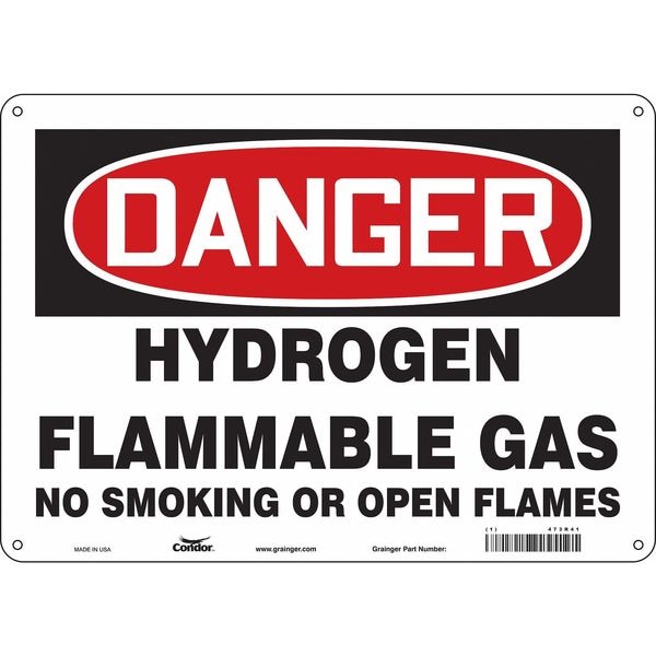 Safety Sign, Horizontal Rectangle, Number of Printed Sides 1, English, Sign Format Traditional OSHA, Sign Legend Hydrogen Flammable Gas No Smoking Or Open Flames, Sign Legend Background Color White, Sign Legend Style Text