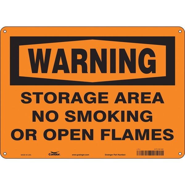 Safety Sign, Horizontal Rectangle, Number of Printed Sides 1, English, Sign Format Traditional OSHA, Sign Legend Storage Area No Smoking Or Open Flames, Sign Legend Background Color Orange, Sign Legend Style Text