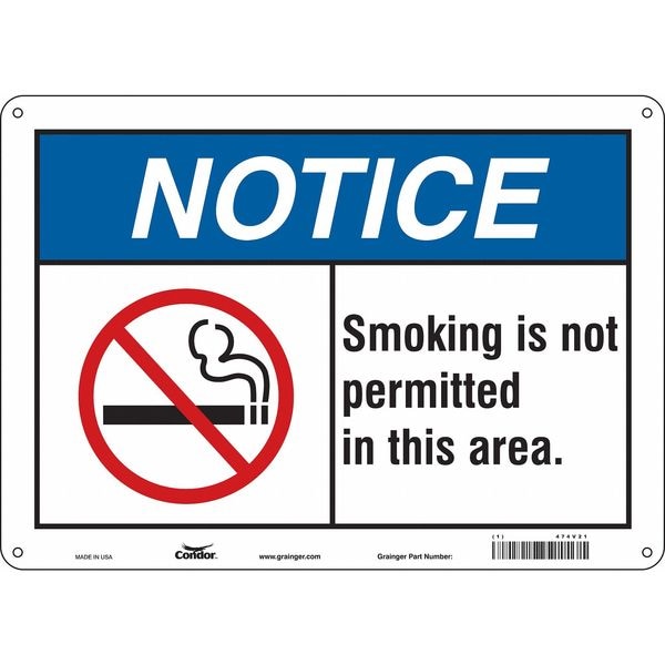 Safety Sign, Horizontal Rectangle, Number of Printed Sides 1, English, Sign Format ANSI/OSHA Format, Sign Legend Smoking Is Not Permitted In This Area., Sign Legend Background Color White, Sign Legend Style Symbol and Text
