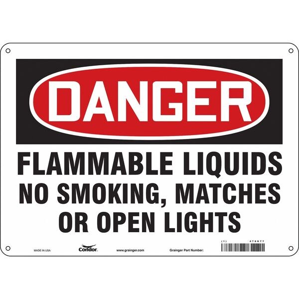 Safety Sign, Horizontal Rectangle, Number of Printed Sides 1, English, Sign Format Traditional OSHA, Sign Legend Flammable Liquid No Smoking, Matches Or Open Lights, Sign Legend Background Color White, Sign Legend Style Text
