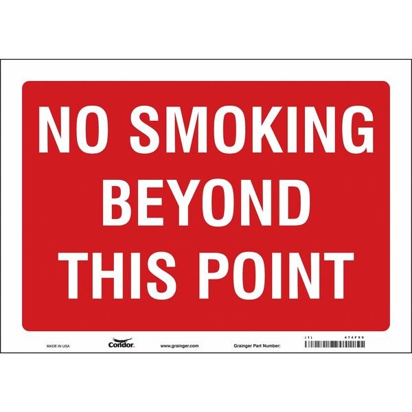 Safety Sign, Horizontal Rectangle, Number of Printed Sides 1, English, Sign Format Other Format, Sign Legend No Smoking Beyond This Point, Sign Legend Background Color Red, White, Sign Legend Style Text