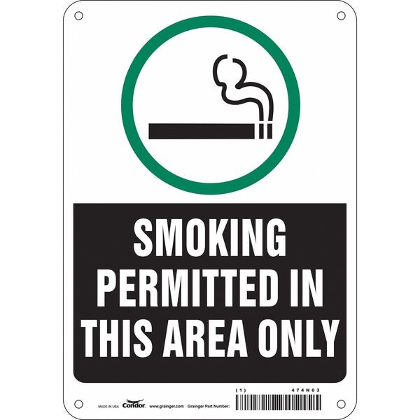 Safety Sign, Horizontal Rectangle, Number of Printed Sides 1, English, Sign Format Other Format, Sign Legend Smoking Permitted In This Area Only, Sign Legend Background Color Black, White, Sign Legend Style Symbol and Text