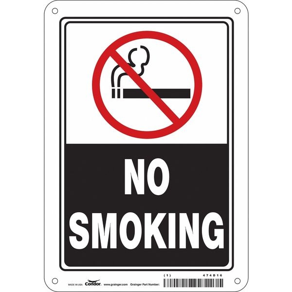 Safety Sign, Horizontal Rectangle, Number of Printed Sides 1, English, Sign Format Other Format, Sign Legend No Smoking, Sign Legend Background Color Black, White, Sign Legend Style Symbol and Text