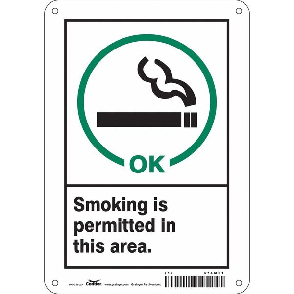 Safety Sign, Horizontal Rectangle, Number of Printed Sides 1, English, Sign Format Other Format, Sign Legend Smoking Is Permitted In This Area., Sign Legend Background Color White, Sign Legend Style Symbol and Text
