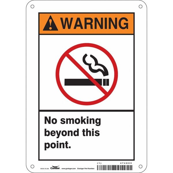 Safety Sign, Horizontal Rectangle, Number of Printed Sides 1, English, Sign Format ANSI/OSHA Format, Sign Legend No Smoking Beyond This Point., Sign Legend Background Color White, Sign Legend Style Symbol and Text