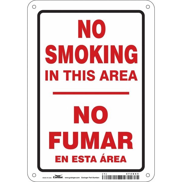 Safety Sign, Horizontal Rectangle, Number of Printed Sides 1, English, Spanish, Sign Format Other Format, Sign Legend No Smoking This Area/No Fumar En Esta Area, Sign Legend Background Color White, Sign Legend Style Text
