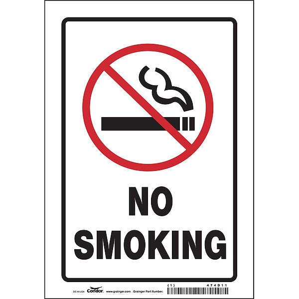 Safety Sign, Horizontal Rectangle, Number of Printed Sides 1, English, Sign Format Other Format, Sign Legend No Smoking, Sign Legend Background Color White, Sign Legend Style Symbol and Text