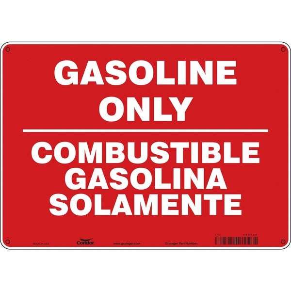 Safety Sign, Horizontal Rectangle, Number of Printed Sides 1, English, Spanish, Sign Format Other Format, Sign Legend Gasoline Only/Combustible Gasolina Solamente, Sign Legend Background Color Red, Sign Legend Style Text