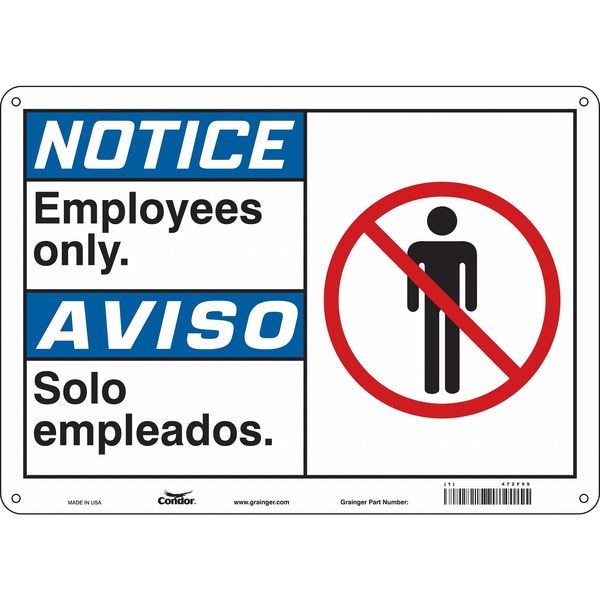Safety Sign, Horizontal Rectangle, Number of Printed Sides 1, English, Spanish, Sign Format ANSI/OSHA Format, Sign Legend Employees Only./Solo Empleados., Sign Legend Background Color White, Sign Legend Style Symbol and Text