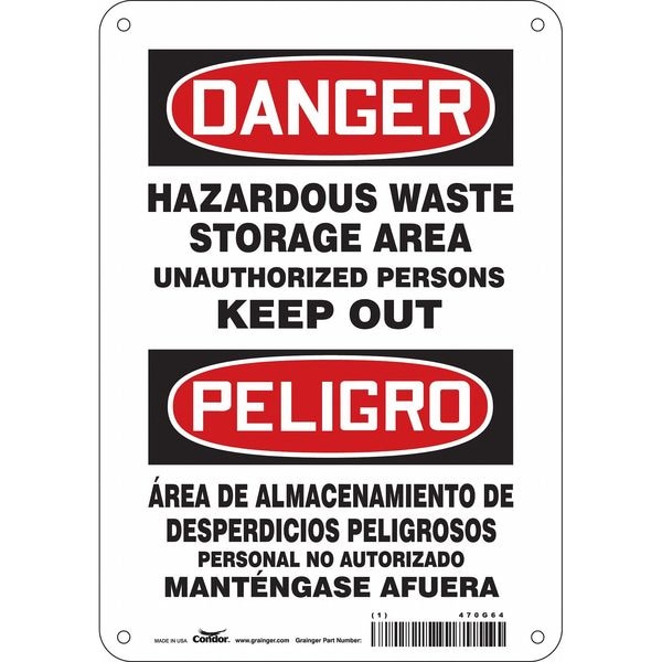 Hazardous Waste Storage Area Unauthorized Persons Keep Out/Area De Almacenamiento De Desperdicios sos Personal No Autorizado Mantengase Afuera