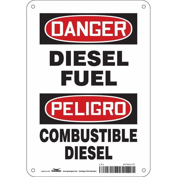 Safety Sign, Horizontal Rectangle, Number of Printed Sides 1, English, Spanish, Sign Format Traditional OSHA, Sign Legend Diesel Fuel/Combustible Diesel, Sign Legend Background Color White, Sign Legend Style Text