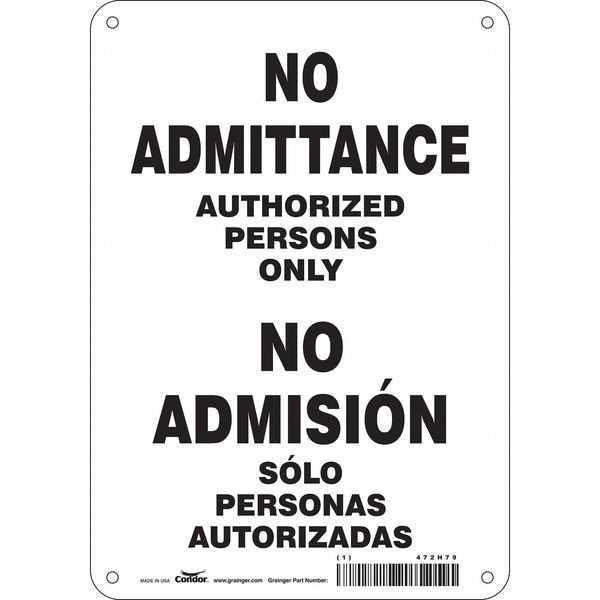 Safety Sign, Horizontal Rectangle, Number of Printed Sides 1, English, Spanish, Sign Format Other Format, Sign Legend No Admittance Authorized Persons Only/No Admision Solo Personas Autorizadas, Sign Legend Background Color White, Sign Legend Style Text