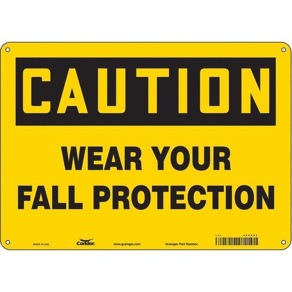 Safety Sign, Horizontal Rectangle, Number of Printed Sides 1, English, Sign Format Traditional OSHA, Sign Legend Wear Your Fall Protection, Sign Legend Background Color Yellow, Sign Legend Style Text
