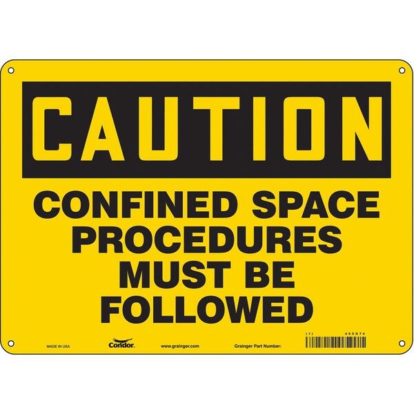 Safety Sign, Horizontal Rectangle, Number of Printed Sides 1, English, Sign Format Traditional OSHA, Sign Legend Confined Space Procedures Must Be Followed, Sign Legend Background Color Yellow, Sign Legend Style Text