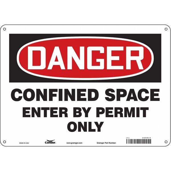Safety Sign, Horizontal Rectangle, Number of Printed Sides 1, English, Sign Format Traditional OSHA, Sign Legend Confined Space Entry By Permit Only, Sign Legend Background Color White, Sign Legend Style Text