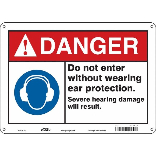 Safety Sign, Horizontal Rectangle, Number of Printed Sides 1, English, Sign Format ANSI/OSHA Format, Sign Legend Do Not Enter Without Wearing Ear Protection. Severe Hearing Damage Will Result., Sign Legend Background Color White, Sign Legend Style Symbol and Text