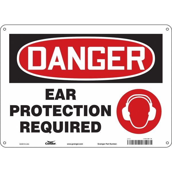 Safety Sign, Horizontal Rectangle, Number of Printed Sides 1, English, Sign Format Traditional OSHA, Sign Legend Ear Protection Required, Sign Legend Background Color White, Sign Legend Style Symbol and Text