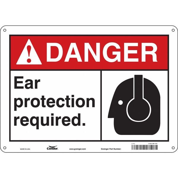 Safety Sign, Horizontal Rectangle, Number of Printed Sides 1, English, Sign Format ANSI/OSHA Format, Sign Legend Ear Protection Required., Sign Legend Background Color White, Sign Legend Style Symbol and Text