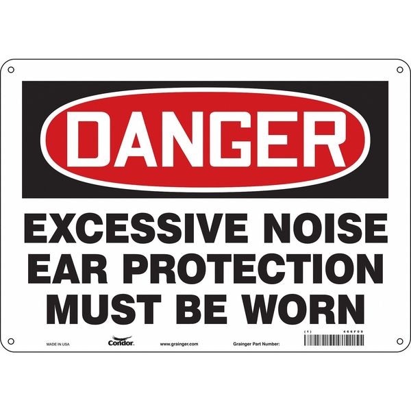 Safety Sign, Horizontal Rectangle, Number of Printed Sides 1, English, Sign Format Traditional OSHA, Sign Legend Excessive Noise Ear Protection Must Be Worn, Sign Legend Background Color White, Sign Legend Style Text