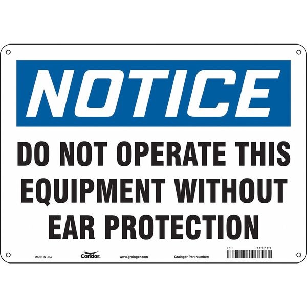 Safety Sign, Horizontal Rectangle, Number of Printed Sides 1, English, Sign Format Traditional OSHA, Sign Legend Do Not Operate This Equipment Without Ear Protection, Sign Legend Background Color White, Sign Legend Style Text