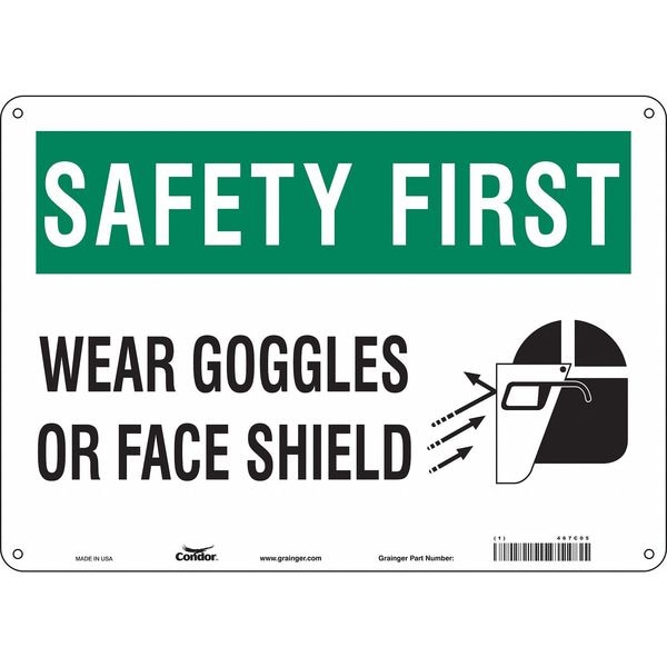 Safety Sign, Horizontal Rectangle, Number of Printed Sides 1, English, Sign Format Traditional OSHA, Sign Legend Wear Goggles Or Face Shield, Sign Legend Background Color White, Sign Legend Style Symbol and Text