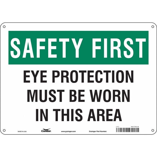 Safety Sign, Horizontal Rectangle, Number of Printed Sides 1, English, Sign Format Traditional OSHA, Sign Legend Eye Protection Must Be Worn In This Area, Sign Legend Background Color White, Sign Legend Style Text