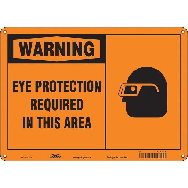 Safety Sign, Horizontal Rectangle, Number of Printed Sides 1, English, Sign Format Traditional OSHA, Sign Legend Eye Protection Required In This Area, Sign Legend Background Color Orange, Sign Legend Style Symbol and Text