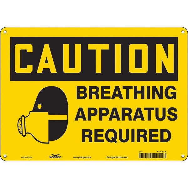 Safety Sign, Horizontal Rectangle, Number of Printed Sides 1, English, Sign Format Traditional OSHA, Sign Legend Breathing Apparatus Required, Sign Legend Background Color Yellow, Sign Legend Style Symbol and Text