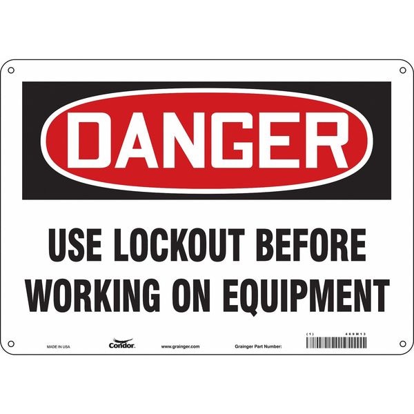 Safety Sign, Horizontal Rectangle, Number of Printed Sides 1, English, Sign Format Traditional OSHA, Sign Legend Use Lockout Before Working On Equipment, Sign Legend Background Color White, Sign Legend Style Text