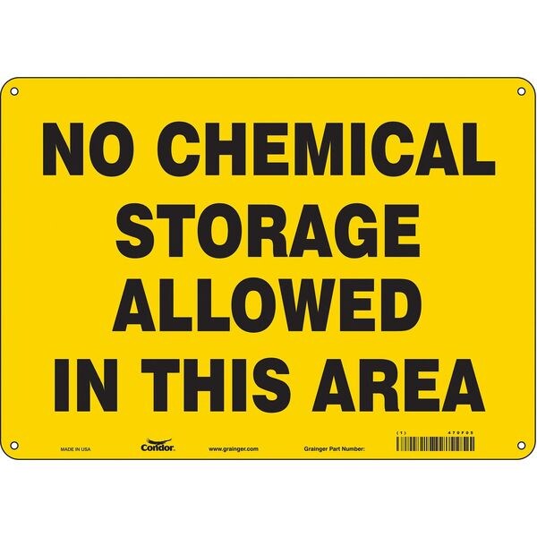 Safety Sign, Horizontal Rectangle, Number of Printed Sides 1, English, Sign Format Other Format, Sign Legend No Chemical Storage Allowed In This Area, Sign Legend Background Color Yellow, Sign Legend Style Text